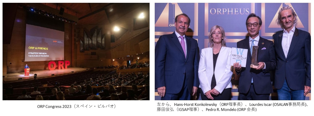 一般社団法人セーフティグローバル推進機構(IGSAP)が、スペインのビルバオで開催されたORP Congress 2023 (2023年4月26日~28日)において2023年度国際ORP大賞を受賞し、IGSAPを代表して藤田俊弘理事が授賞式に出席しました。(ORP:国際労働災害予防基金)